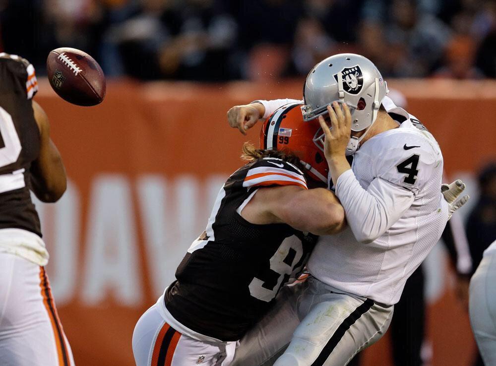 Carr 54 alkalommal passzolt a liga egyik legrosszabb futás elleni védelme ellen.a kretén playhívások: Derek Carr and Sebastian Janikowski have lined up wide right as a receiver.