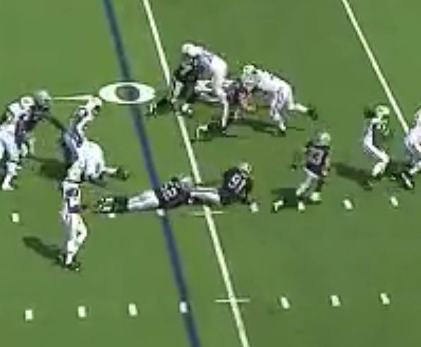 Mojo kiszedi az egyik blitzet vagy endet (nem látom a számát), Riviérának kellene az azonos oldali blitzet (#57) Howard és Kalifa üti #91 ( és ha kell akkor egyikőjük üti #52 habár ő inkább coverben van és a passing line-t nézi) Wis és Gabe üti #96 és Penn fedi a vakoldalt ha #56 megindulna ha esetleg meg bevágott volna középre akkor meg Wisnek kellett volna leválni és felvenni.