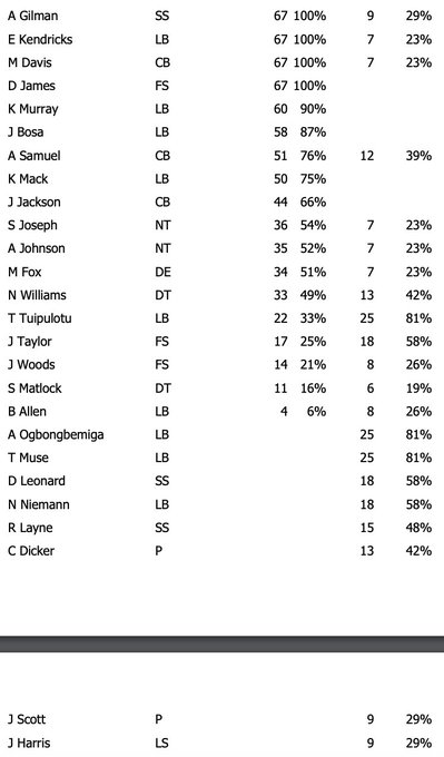 DB sorral már szezon előtt lehetett sejteni/tudni, hogy baj lesz. Ez a tax, hogy Asante bemegy középre (amíg JC le nem sérült) remélem csak a phinsnek szólt. Mondjuk felé nem igazán dobtak, de az összes többit etették. Sok parázs védekezést láthattunk, csak sajnos a secondaryben a folyamatos jó védekezés a kifizetődő és nem az egy látványos védekezés, majd egy engedett 1st down. JC-t el kéne felejteni, Ja'Sir csak egy játékot engedett (mondjuk azon a meccs ment el), de őt még nem írnám le, mert előtte pl majdnem megnyerte a meccset a fumble-el amiből végül 'csak' incomplete lett. Gilmanben reménykedtem, hogy talán szintet fog lépni, de visszalépés a nem túl jó Adderleyhez képest is eddig. Azért nehéz teljesen negatívan beszélni a secondaryről, mert mégis csak nagyon nehéz dolguk volt az ellenfél miatt + nem létezett Derwin James blitzeit leszámítva pass rush. A polinéz Brady meg is ebédelhetett volna majd minden snapben. Nem várhatjuk el, hogy 5 mp-ig fogjon minden WR-t valaki. Jó mondjuk JC-nek Hill fél secig sem sikerült.