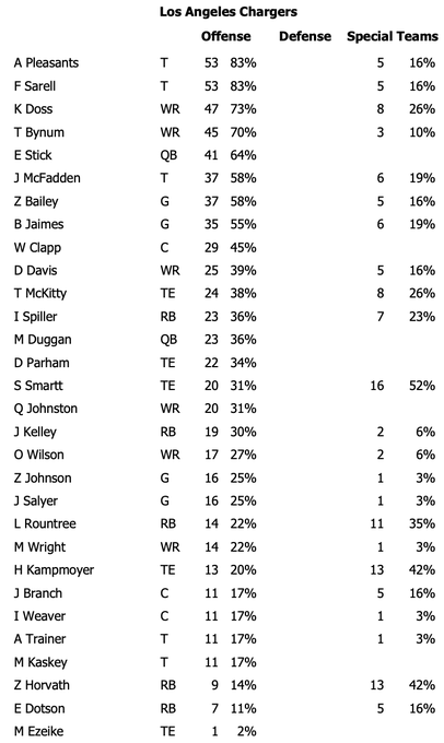 First unofficial #Chargers depth chart of the season. Remember: This is compiled by team's PR staff. So don't read too far into it. pic.twitter.com/5yQaArDzCX