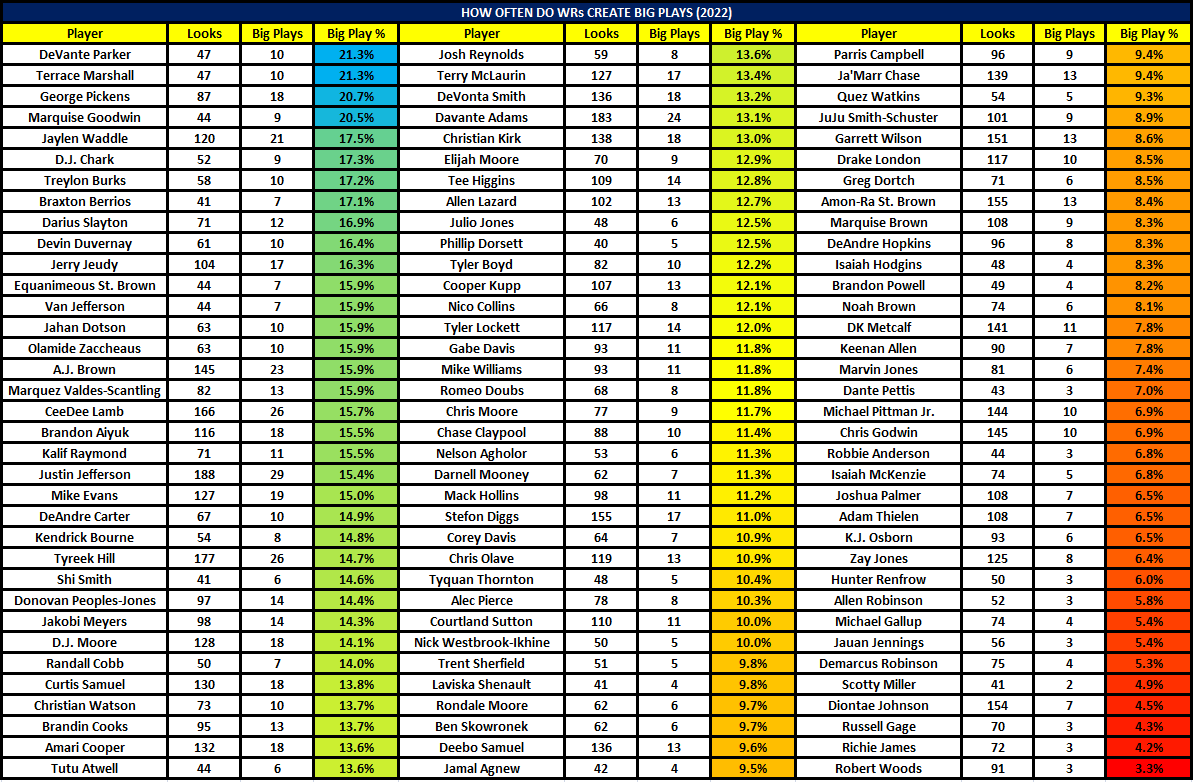 Zseni, hogy DeAndre Carter ennyivel előrébb van ezen a listán mint Mike Williams és Keenan Allen. Nem hiába, Lombardi egy igazi mágus.