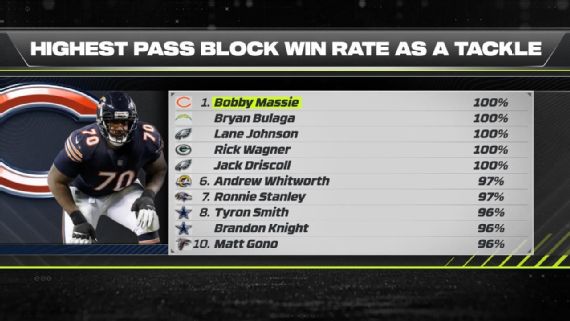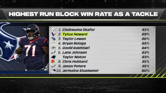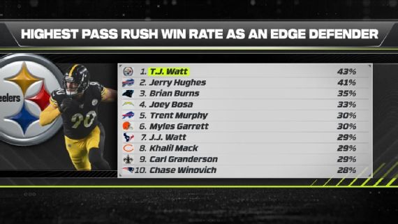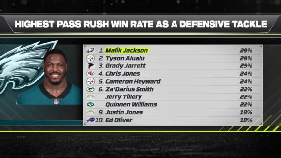 Team pass rush win rate-ben 5.-ek vagyunk (52%), run stop win rate-ben pedig 9.-ek (32%)