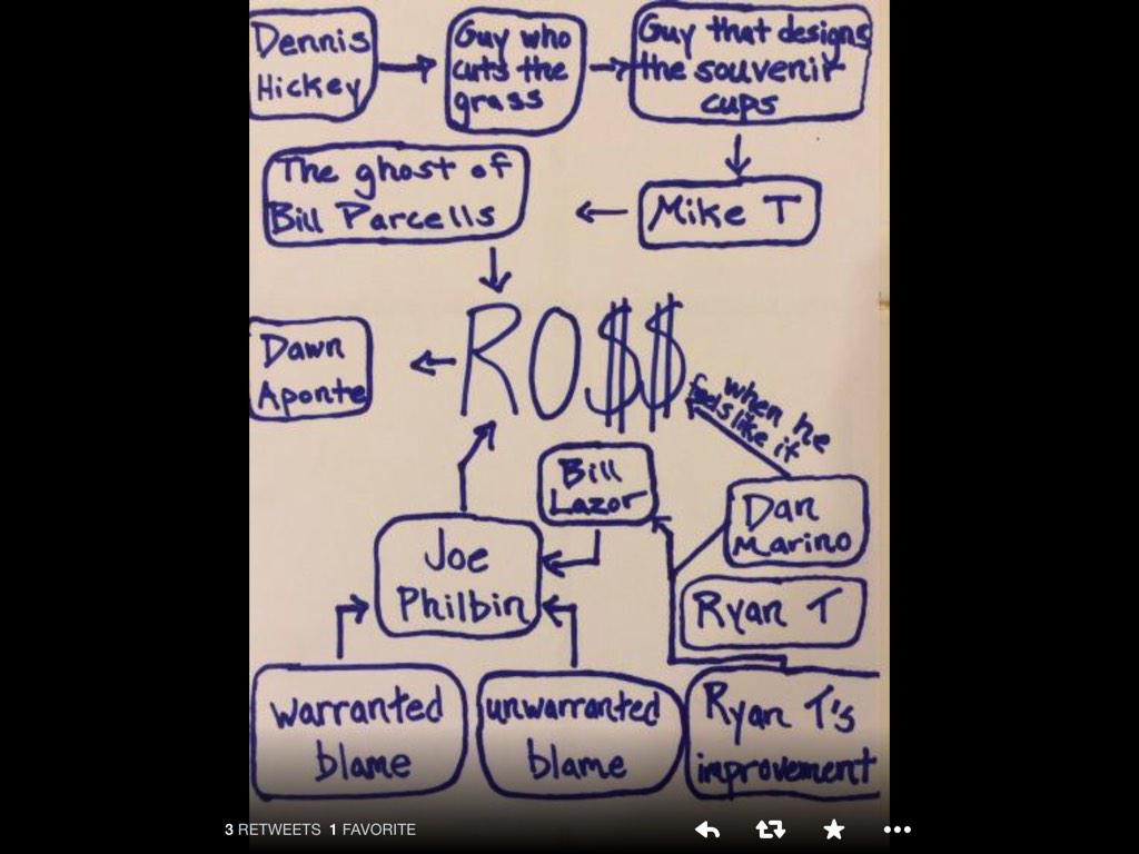 Tannenbaum igen nagy bizalmat élvez Ross és Matt Higgins irányában. Ugye Ross elsősorban üzletember (több érdekeltsége is van NY-ban), Higgins az üzleti partnere 2012 óta (lehet régebb óta, de azóta biztos). Közös cégük is van és Higgins igen nagy hal a szociális média világában. Higgins esetében a Jets korábbi staff (executive vice president of business operations stb. több pozíciója is volt, Woody Johnson jobb kezének számított) tagjáról van szó.