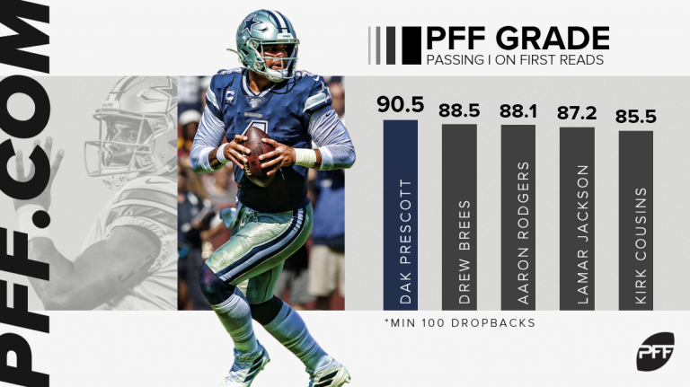 A PFF-nél Dak Prescott a legjobb az első olvasásos passzoknál.