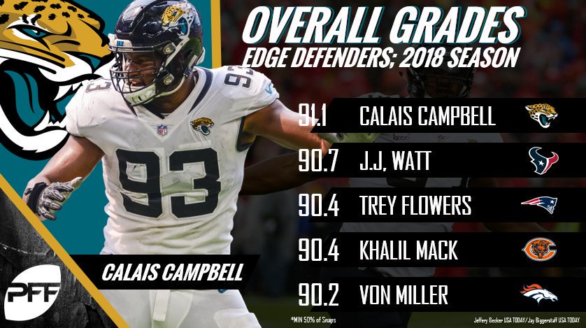 Erdekes, hogy Flowers nem kapott 1 szavazatot sem (!) az All Pro szavazáson...Trey Flowers = Calais Campbell. Sajnos nekik esélyük sincs odaérni, mert nem csinálnak 15+ sacket, hiába nyomásban, dirstuptivitásban hozzák magukat. Campbellnek is 1 all-pro éve volt csak, amikor összejött neki a top5 sack szám. Idén legalább olyan jó volt mint tavaly, csak a sack szám nem jött, és esélye sincs neki sem.