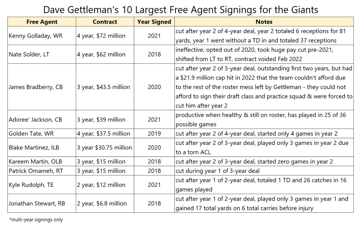 Még azért egy hét van az FA piacig, és mind Saquon mind McKinney ügynökével egyeztettek Schoen-ék, szóval valamennyi esély van még rá szerintem, hogy valamelyik visszajön. Ha nem akkor ez megint egy rebuild gomb, és itt az ideje minden pénzt az OL-DFrontSevenre költeni.