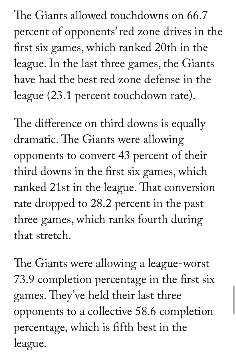 A defense statisztikai fejlődése kézzel fogható. Shepard-on kívül elvileg mindenki bevethető lesz mától, úgyhogy remélek egy egy ilyenfajta fejlődést is, ha ezek után 3 yardos passzok jönnek akkor bújjunk el.