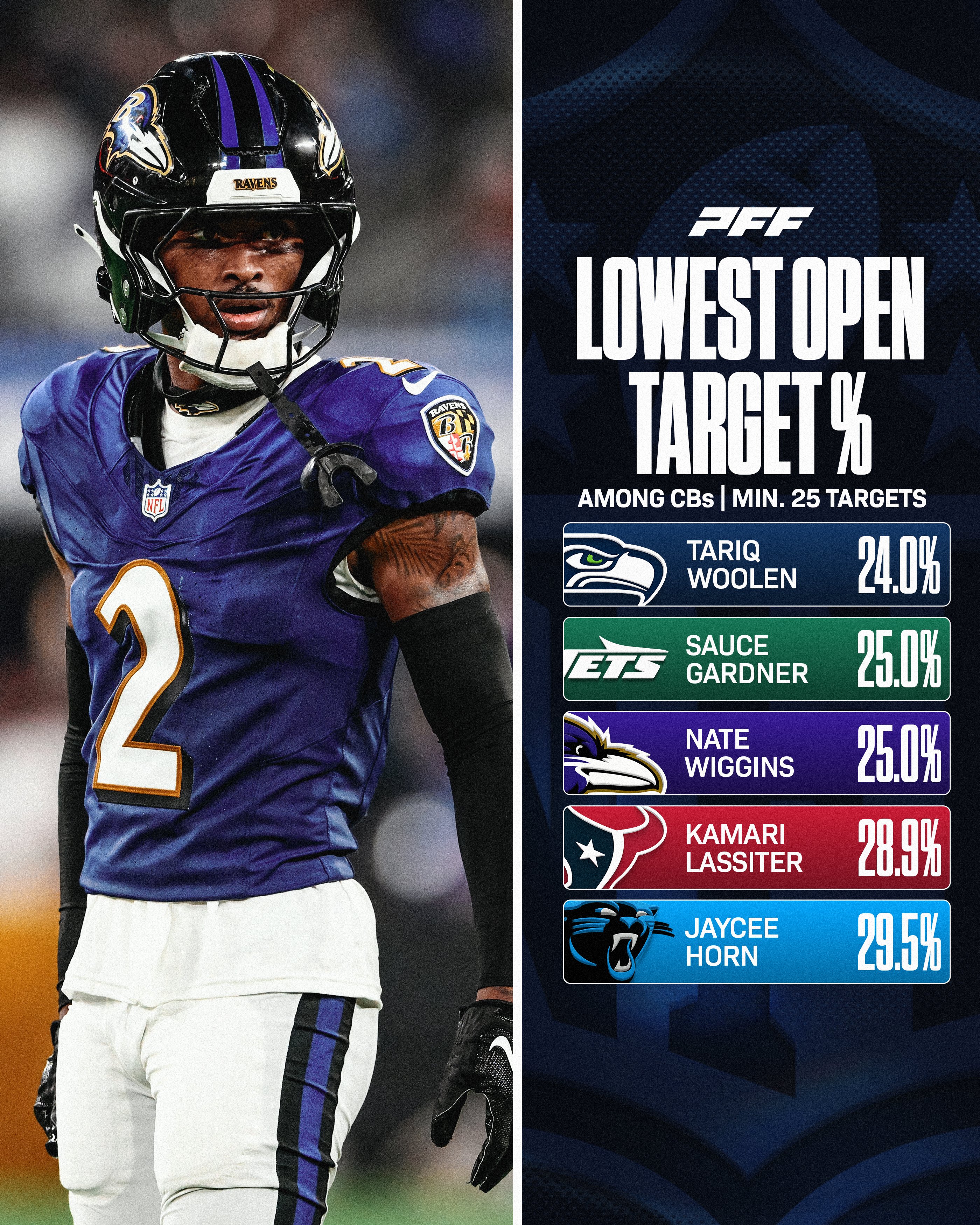 Csak a tisztánlátás végett, Open separation akkor történik, amikor 2-nél több yarddal megveri az elkapó az őt őrző CB-t. De ennél kisebb mértékben is megverhetik a védőket, ezt "Step"nek hívja a PFF, amikor egyértelműen megjátszható lenne az elkapó, de azért nem verte meg nagyon a védőt, csak egy lépéssel. Ezt is belevéve szerintem Sauce sokkal rosszabb helyen állna, de nem láttam idén, csak 2 Jets meccset, illetve olvasom hogy rosszabb szezonja van idén.