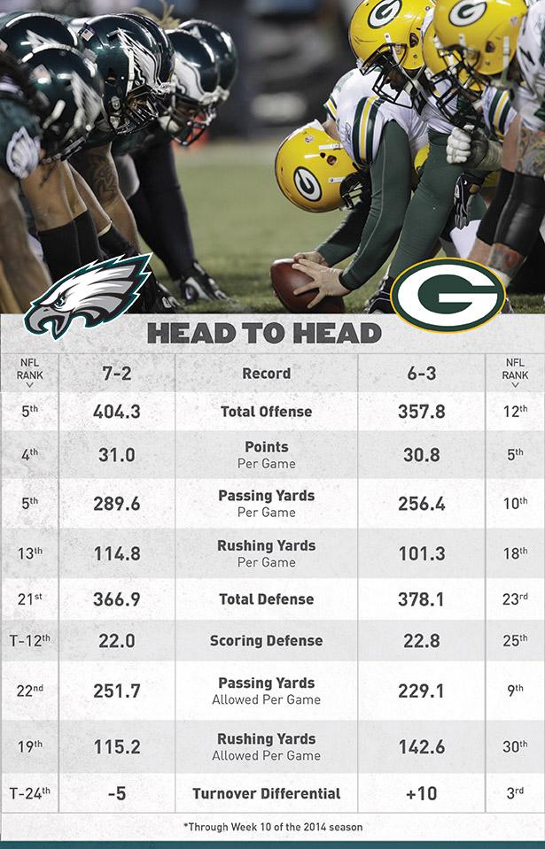 Eagles inactives: Foles, Wolff, Watkins, Vandervelde, Kelly, Maehl, HartElőször a szezon során zöld gatyában és fehér felsőben játszunk.