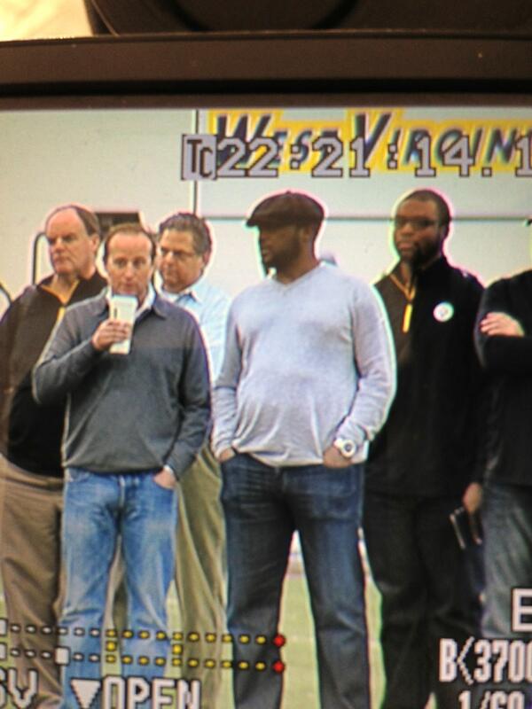 Tomlin is jelen van a West Virginia pro day-en. Remélem Stedman Bailey-t nézegeti.