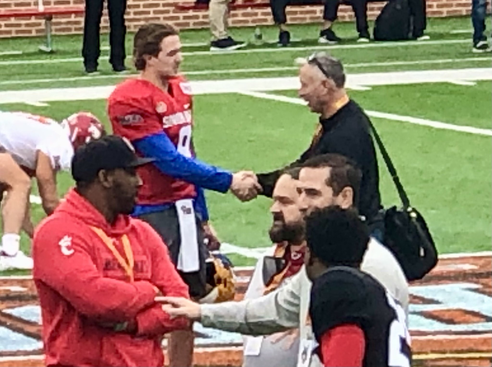 A képen Mike Sullivan a Steelers QB edzője Pickettel, a Senior Bowl edzésen.
