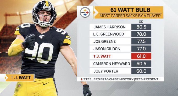 azt tudtátok, hogy ki volt az előző olyan NFL védő, aki első 5 évében 61+ sacket szerzett? 😀| JJ Watt |