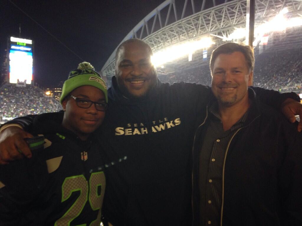 akkor egész okosnak tartom magam. nem jutott eszembe a neve, de rá tippeltem volna 😀Nem -nem, bar kicsit hasonlit ra. Mr Robbie Tobeck, a "nagy SB" csapat centere volt. Het evig jatszott nalunk es 2007-ben vonult vissza. Meg emlekszem a visszavonulasakori cikkre: "I will always be a Seahawk". Big Walt-tal regi cimbik, jol kijottek egymassal. Most is egyutt mentek a meccsre. Amugy biztositasi broker ceg tulaja Bellevueben. Nem szakadt el a csapattol.Regi kedves ismerosok is kint jartak a meccsen. Aki tudja, hogy ki a jobb oldali az tuti, hogy itt volt mar 6 eve is.Remek ProBowler guardunk volt, Steve Hutchinson az.BigBaltazar