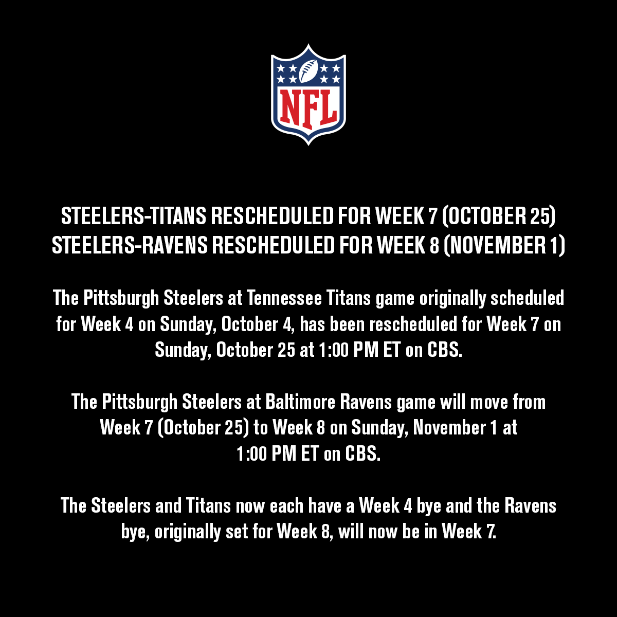 NFL wants to and intends to play the Titans-Steelers game as scheduled Sunday; one of the contingency plans to allow for additional testing and contact tracing to occur would be to move the game to Monday night, per source.