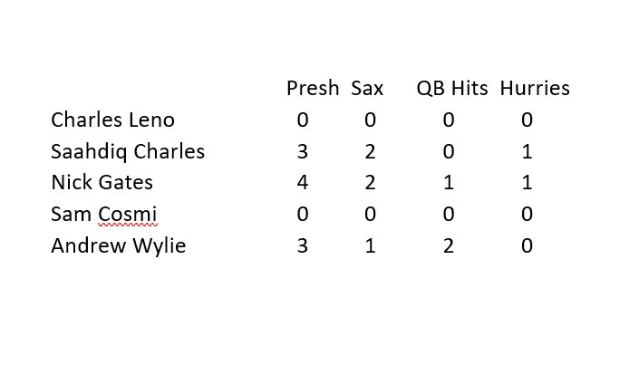 Persze az O-fal is vacak, de ennek a sok sacknek a kétharmada Sammyé volt.Hát, ez nem volt jó meccs Sammy fiútól.Azért nem csak vele volt baj szerintem. 0vs9 sack, 1 vs 15 QB hit.