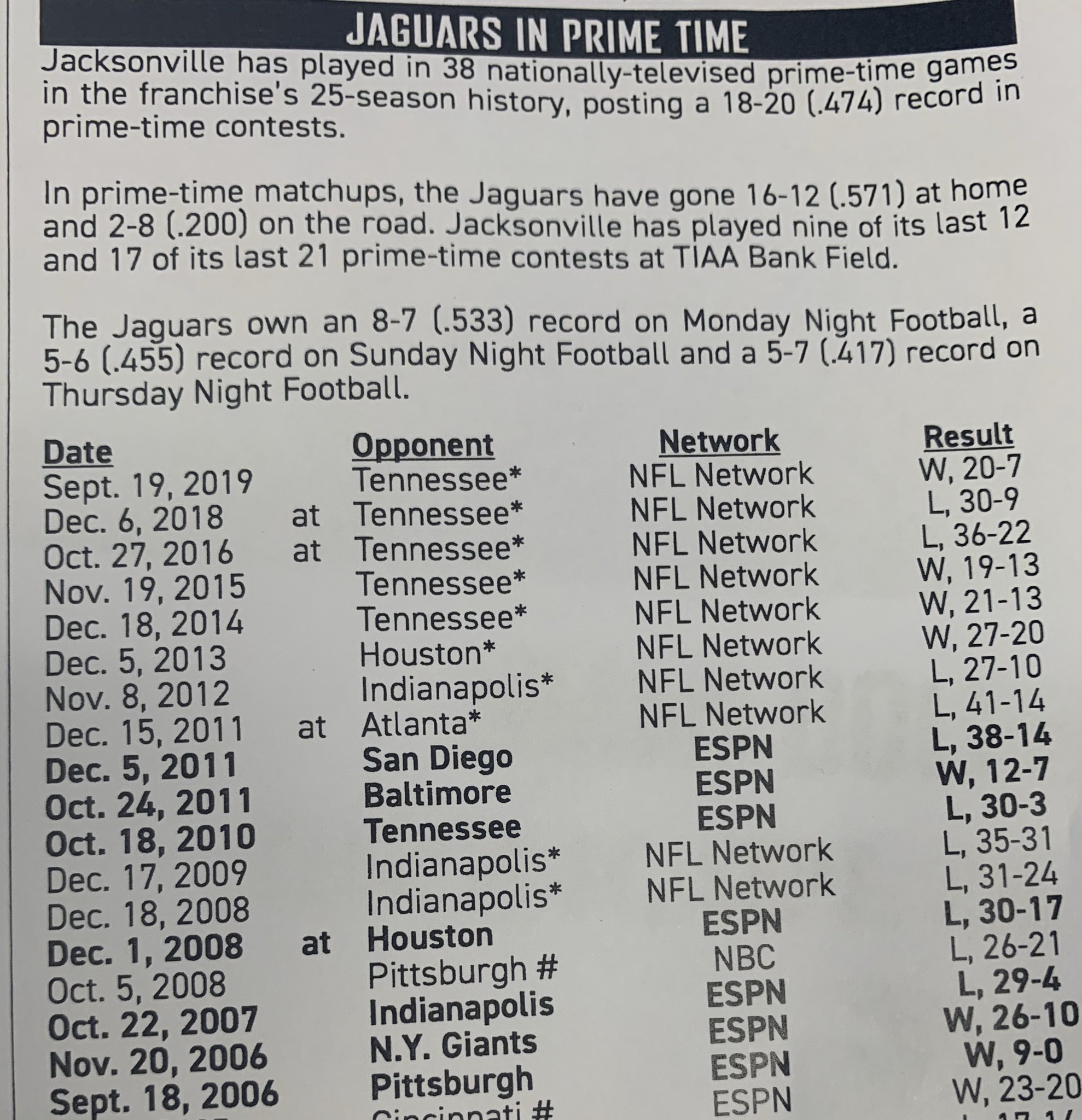 2013 óta először nem a Titans a Jags ellenfele Prime Time meccsen.... Ez mindent elmond az elmúlt éveinkről és hogy mennyire szarik ránk az országos média(sokszor joggal). És benne volt egy AFC döntős év.. .