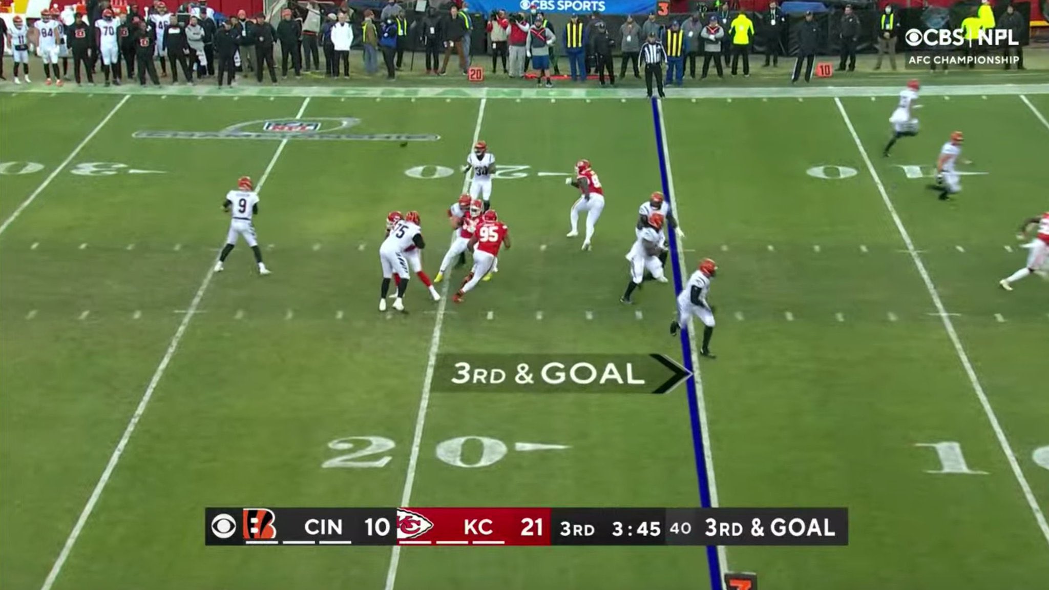 Rögtön a play után mondta Romo, hogy ezt elbaszta Perine, utána mutatták is, hogy Burrow mutatta Perine-nak, hogy a másik oldalra kellett volna mennie. Akkor bizony easy TD.