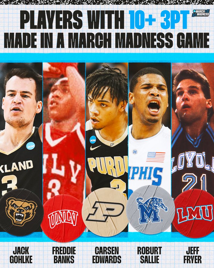 98% of Jack Gohlke’s shot attempts have been 3’s this season 🤯#MarchMadness pic.twitter.com/2rAHvsmqJt