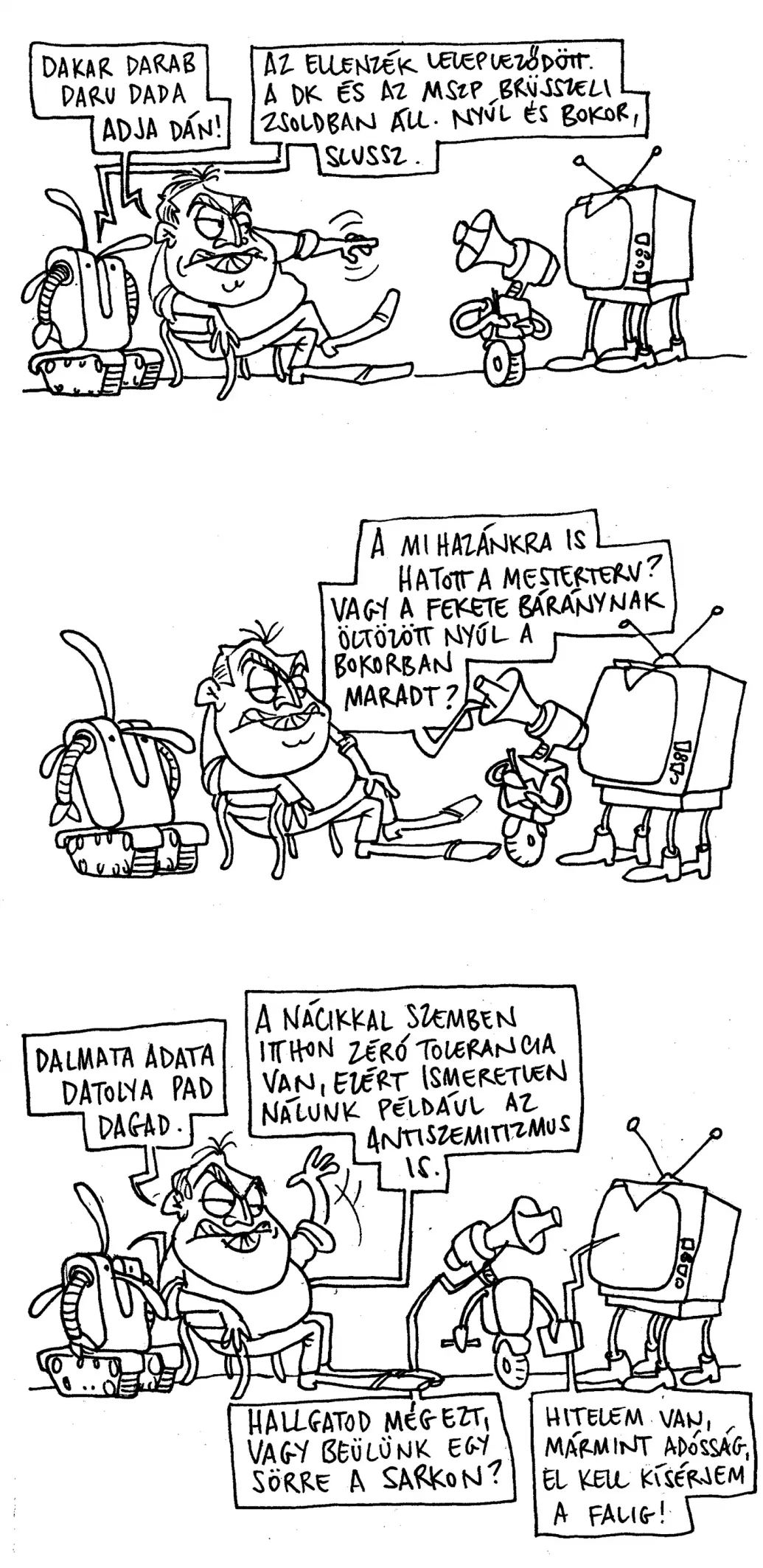 Na, már kezdi is a fidesz frakció, "feminizáló hormonbrossúrák", "szegecses nyakörvek", ezt a Radicsot ha valaki hamarosan nem veri pofán, az a világ nagy hibája...A másik: "férfiak meztelenül vonaglottak"... Ezek merre jártak?