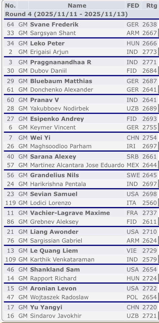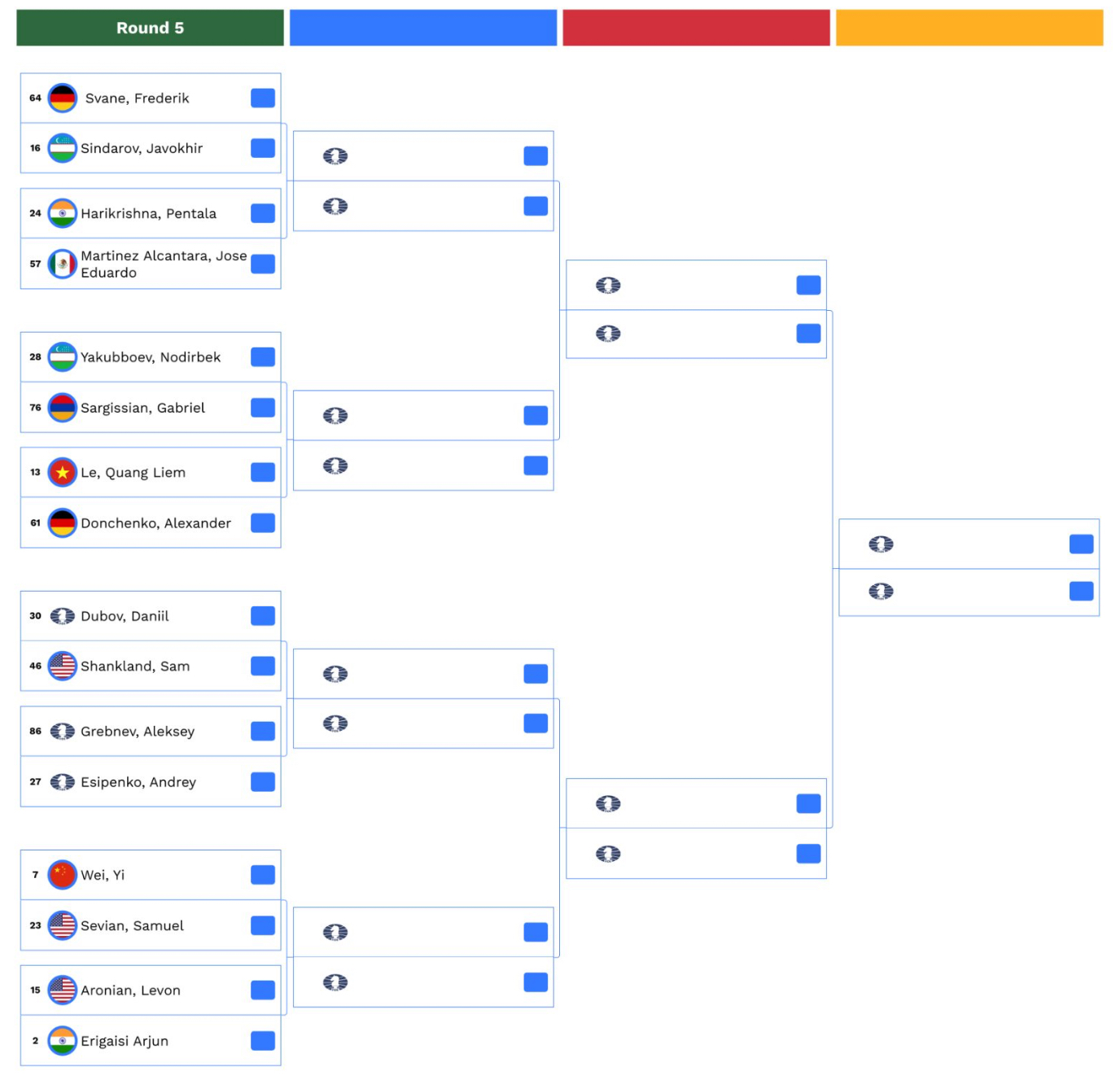 A harmadik körben kiesett nagyobb nevek:Gukesh (1.kiemelt, regnáló világbajnok)