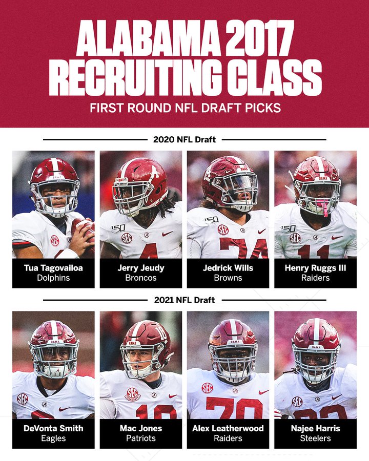 53-as rosterek zárása után 60 (!!!) Alabama játékos maradt a keretekben, azaz több, mint 1 komplett rosternyi ex-játékosunk játszik az NFL-ben. 56-an képviseltetik magukat konkrétan az 53-as rosteren és 4-en vannak sérültlistákon. A 32 csapatból mindössze 4-nek a keretében nem képviseltetjük magunkat. Mind a 4 "renitens" csapat az NFC-ben szerepel: Eagles, Saints, Rams, 49ers.
