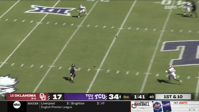 ANOTHER 60+ yard TCU touchdown. Just straight up the middle into a gigantic sea of green.48-17.