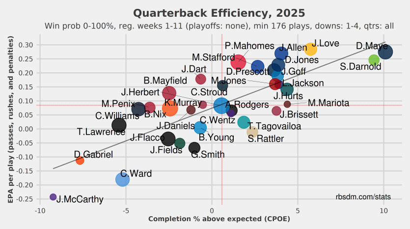 Ez egy (nem) kicsit demagóg értelmezése egy arbitráris statnak, a Bengals ofal és futók húzzák le, nem a wr-ek