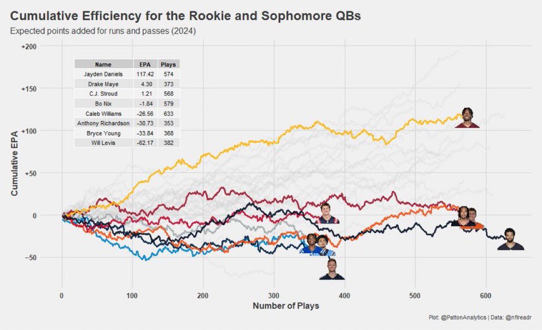 És igen, ebből nyilván lehet karriert hozni, hogy egy top half QB vagy, vagy legalábbis annak nézel ki egy jó rendszerben. Csak Darnold emellé még fiatal és úgy tűnik fejlődőképes is.