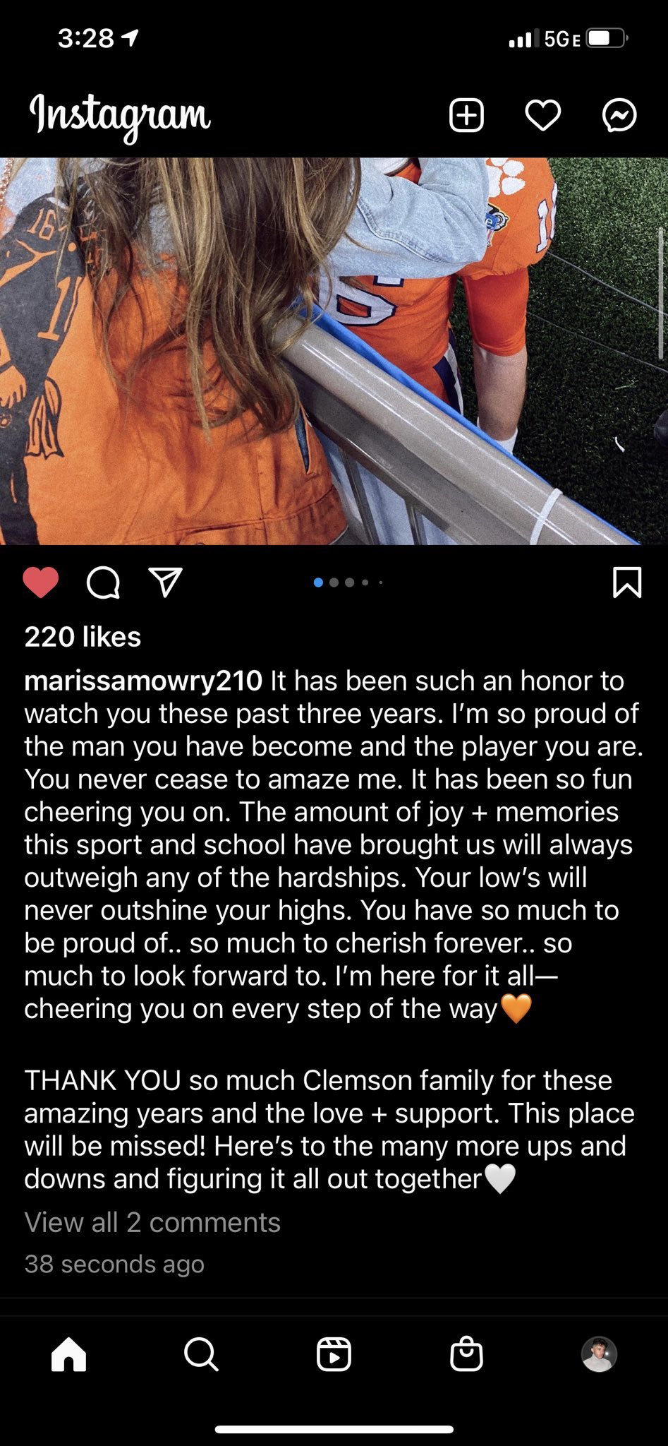 A jövendőbeli Mrs. Trevor Lawrence friss instagram posztjának utolsó sorai nagyon is arra utalnak, hogy megszületett a döntés: Trevor otthagyja a Clemsont és jön ki a draftra.