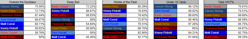 Jah, azt nem láttam hogy Willis ennyi mindent kihagyott... Nakobe Deanről olvastam hogy kb mindent kihagy.Mivel alig csinált felmérőt (pl 40 yardot se futott) így nem meglepő, hogy a combine statok nincsenek az égben.Athleticism scores for the 2022 quarterback class are official.