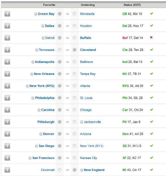 Tate játszik. De egyedül kevés lesz futójáték nélkül. Főleg ha Lombardit megint "outcoaching"-olja az ellen DC-je.BazzaniWinn azért mutattot életjeleket, elkapni nem tud (nem használták erre egyetemen), és rövid yardos szituációban se tudni hogy Szuperál (a BIlls ellen Collinsnak se sikerült), de ahogy a labdát fogta két kézzel nehogy fumble legyen, Tate mellett talán egy egyetlen pozitív dolog volt a Bills ellen az offenseben.
