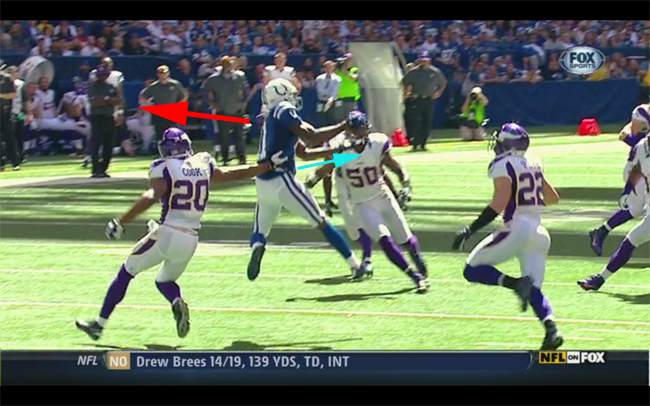 Az első negyedben a nagy 35 yardos passznál is az utolsó 2 másodpercben már csak téblábolt és várta hogy a laszti odaérkezzen.