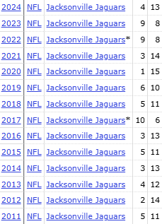 Meaningful foci van novemberben, ennél többet nem kérhetünk, a menetrend pedig csak segíteni fog minket továbbra is, a maradék nehéz meccseink is nyerhetőek.Nem is gondolná az ember, hogy ez milyen ritka dolog nálunk. Coen a 7 W-vel az elmúlt 15 év 4. legsikeresebb Jags szezonját hozza már most, és még van hátra 6 meccs idén.