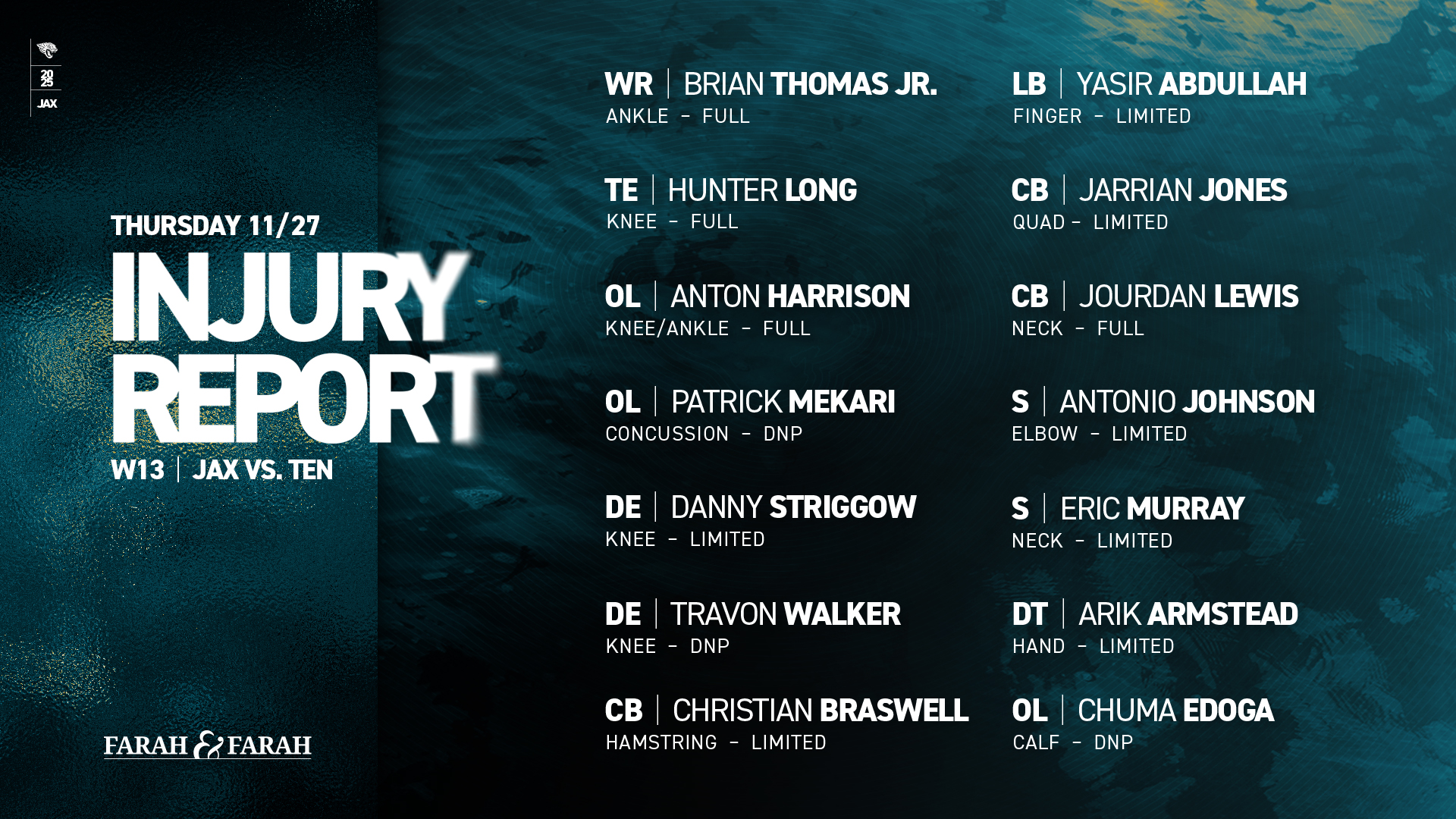 — Jacksonville Jaguars (@Jaguars) November 24, 2025