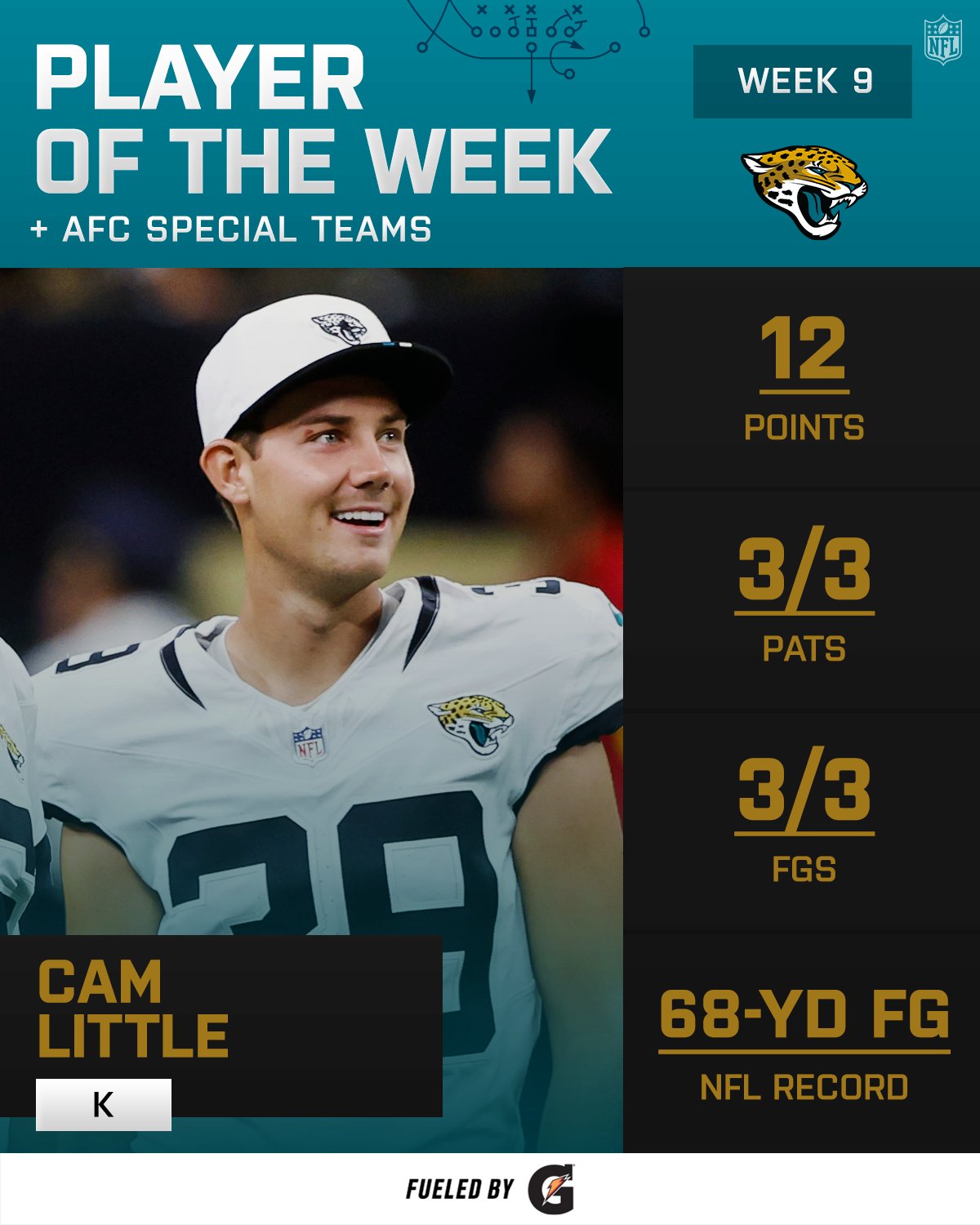És ha már múlt hét, lemaradt, hogy természetesen Cam Little lett a 9. hét AFC ST játékosa