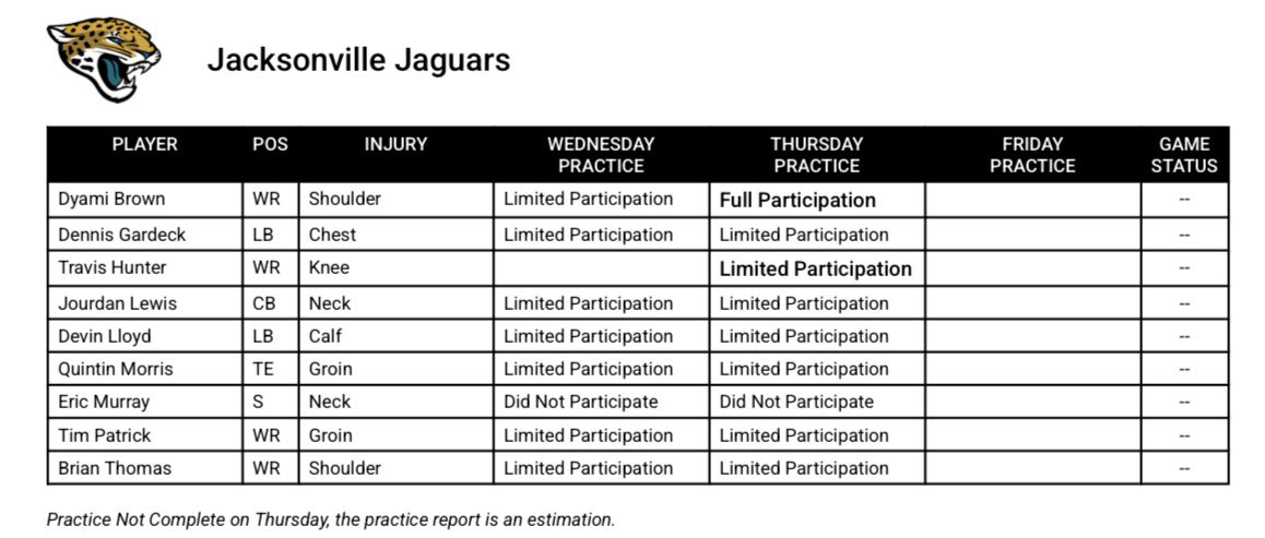 — JaguarsPR (@JaguarsPR) November 3, 2025