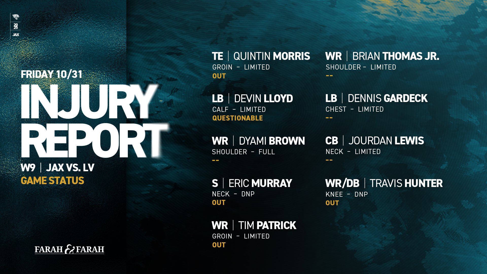 — Jacksonville Jaguars (@Jaguars) October 31, 2025