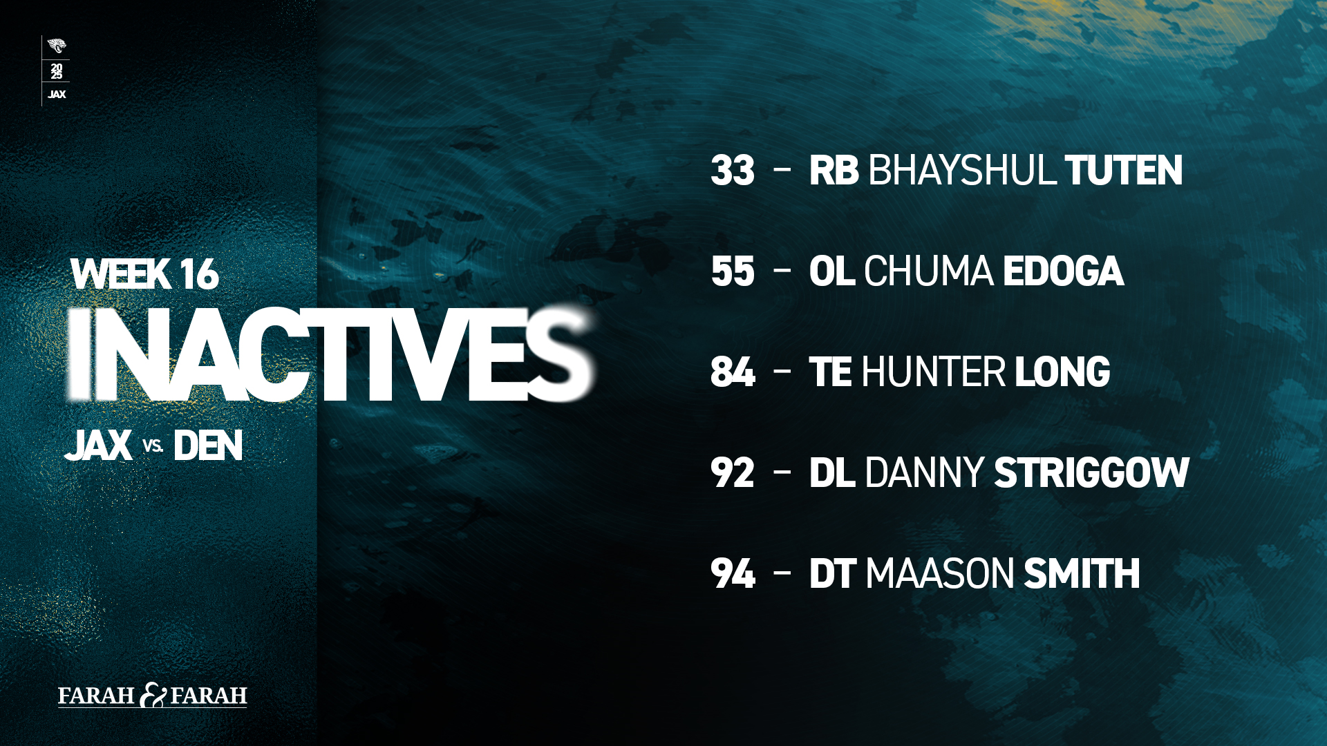 Itt a mienk is. Maason Smith is nagy pick volt Balféktől tavaly a 2. körben. Ja nem. És azt se láttam jönni szezon előtt, hogy Quintin Morris és Johnny Mundt előbb lesznek a TE depth charton, mint Hunter Long.👀 our inactives for #JAXvsDEN.