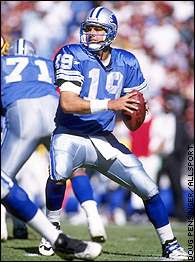 1995, Detroit Lions – San Francisco 49ers. A három meccs után nyeretlen Lions a hibátlan és bajnoki címvédő San Francisco 49ers ellen fordít szerencséjén egy hétfő esti rangadón aratott szoros győzelemmel. A hazai csapat legfőbb támadófegyverét, a fenomenális Barry Sanders-t ugyan semlegesíti a Negyvenkilencesek kiváló futás elleni védelme, de a Lions rövid passzos játékára nem találnak ellenszert George Seifert tanítványai. A detroiti irányító, Scott Mitchell 42 kísérletéből 28-szor juttatja célba a játékszert és főként a száz elkapott yard fölé jutó Brett Perrimant tömi átadásaival. Az első félidő végén 13-3-ra, a negyedik negyed során pedig 24-17-re lépnek el az Oroszlánok a regnáló bajnoktól, az utóbbi állást kialakító játékban Herman Moore szoros őrizetben is akrobatikus mozdulattal kaparintja meg a labdát. Steve Young többször és több yardot passzol, mint detroiti kollégája, és irányításával a vendégek végig lépést tartanak ellenfelükkel. A végjátékban Young John Taylornak adott passzával egalizál a San Francisco, Jason Hanson negyedik mezőnygólját követően pedig Young egyetlen perc alatt a Detroit vörös zónájáig masírozik a Niners támadóegységével. Hat másodperccel a vége előtt azonban – a korábban egyszer már mellétrafáló – Doug Brien a jobb kapuvasat találja telibe 40 yardos, a hosszabbítást ígéretét hordozó mezőnygól-kísérletével, így a hazaiak 27-24-es sikerrel törik meg a San Francisco veretlenségét.