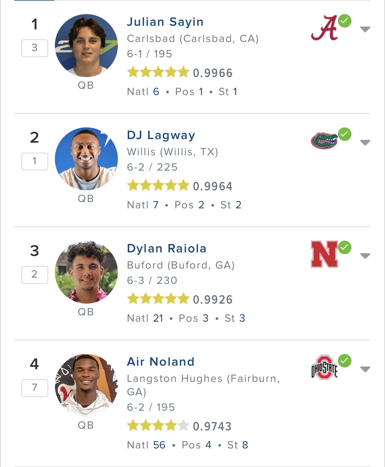 27-ben viszont pokol lesz, ha mindenki kijön. Lagway és Sayin is csak 21 éves lesz a drafton, mindkettő megy a portalra most, és mindkettő előrébb jár, mint Manning jelenleg. Emellett tudom, hogy Sellers ki van itt röhögve, de ő is csak 20 éves most, és brutál nyersanyag. Senki nem tudja megmondani, belőle mit lehet még kihozni. Emellett akit még kiemelnék, Drew Mestemaker, 19 éves, elit szezon alacsonyabb szinten és valszeg megy a portalra ő is. Dylan Raiola is portal, ő is elég magasan van amúgy qb rankingokban 1st rd grade-del. Itt azért ha a felsoroltakból akár csak 2-3 név kilő, már a top10-ért kell kapaszkodnia Archnak.