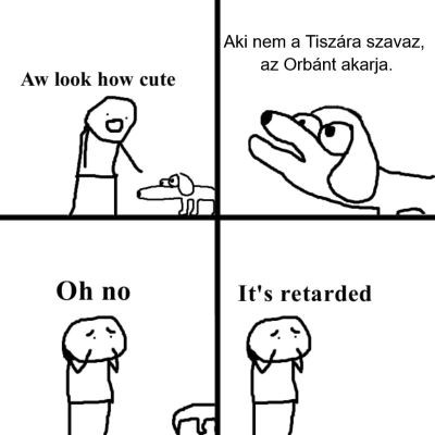 Nem hibáztatlak, szerintem jól döntesz ha a kutyákra szavazol. Tökéletesen hozod azt az attitűdjüket, hogy ha nincs ellenérv a kritikára, akkor valami szar poénnal válaszolnak helyette.tehát arra szavazol, hogy maradjon az ami most van. legalább ne ideoligizálnád meg, akkor kevésbé tűnnél hülyének...Ugyanaz, mint eddig volt, utolsó pillanatban döntök, valszeg a kutyák javára (Fidesz, MH, Tisza nem játszik).Itt nem az alternatíváról volt szó, csupán arról, hogy az alapszabály Mo-n az, hogy a politikusok 99.99 %-a tolvaj, hozzánemértő senkiházi. De úgy tűnik, hogy sokan a tiszás jóembereket kivételnek tekintik ez ügyben. Na ez az, ami meglepő és mulatságos 😊Akkor kire kéne szerinted voksolni?