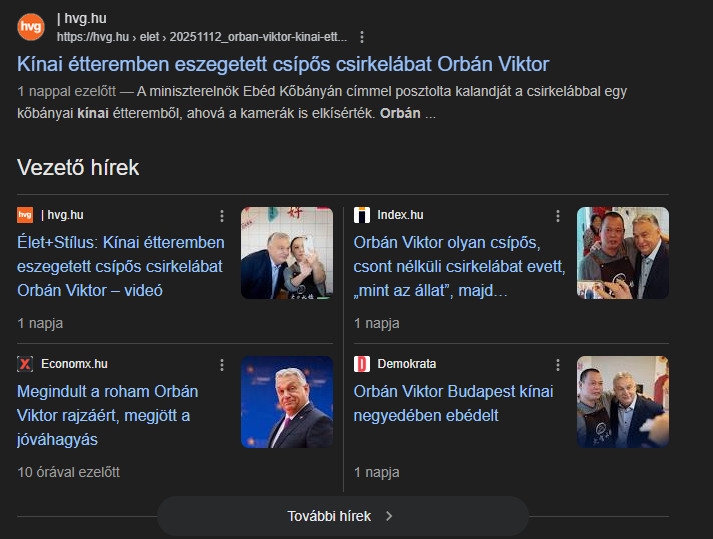 Őszintén remélem, hogy valamelyik hírportál beszámol majd róla: 'normális székletet produkált a miniszterelnök'.És baszki ez hír értéke egy hvgben? Beszarok. Nagyon pedáloznak ennek a gecinek.faszi elment néhány ezer távol-keleti szavazatért egy lepukkadt kinaiba csirkelábat zabálni. a bélrendszerét adja az országért!le vagyok maradva, ki ment el a kínaiba?