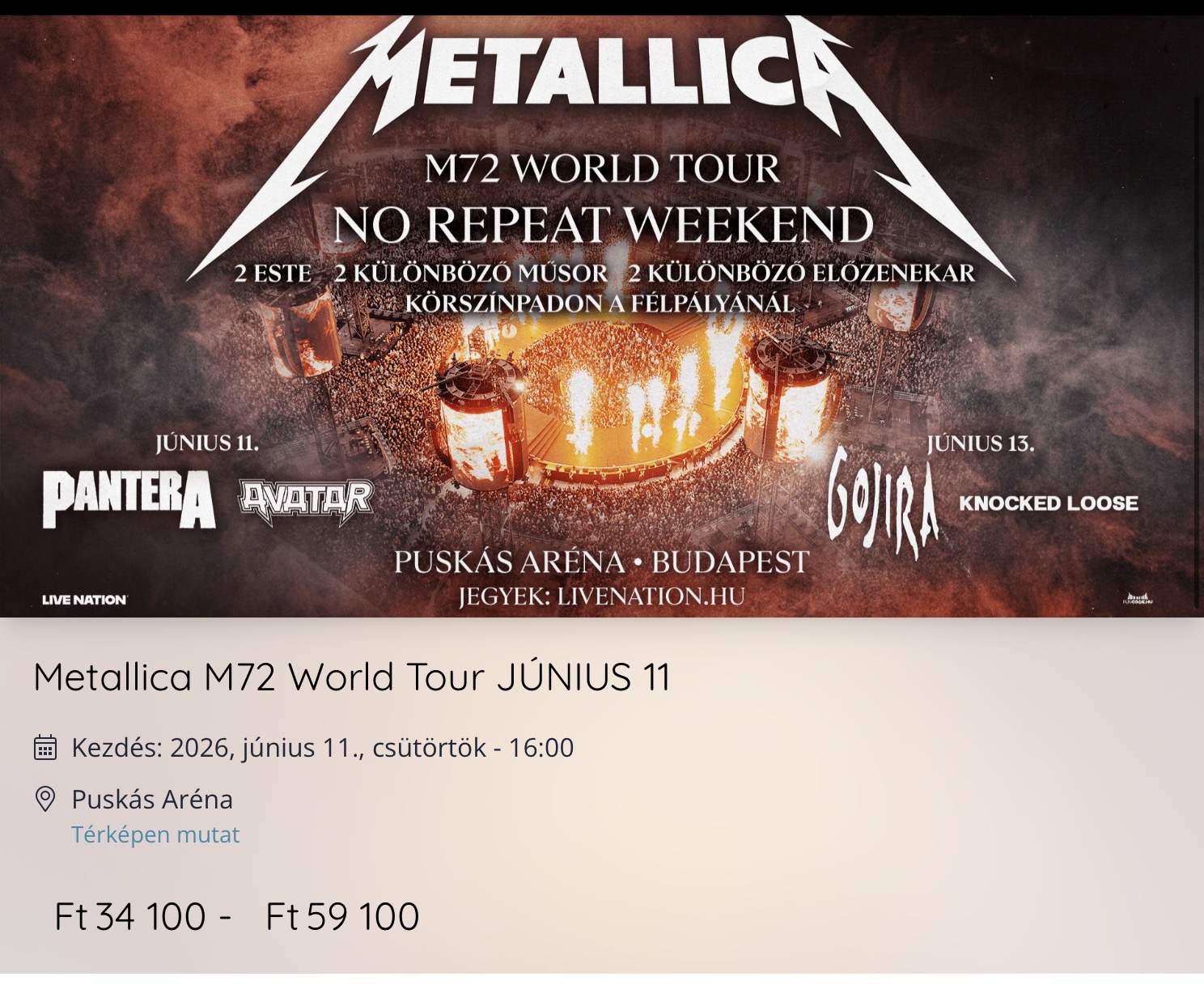 A Gatheringet szinte telibe pontosan írtam, Arénás rockkoncertre mondjuk legyen a 26-os Metallica (de ők tuti teltház duplán), ezt kicsit túlbecsültem.